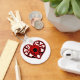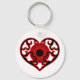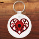 Corazón suave y elegante extraño con un extraño globo ocular rojo y un adorno rojo en una cadena de llaves tierno.