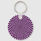 Un diseño de estilo Op Art circular de dos tonalidades, compuesto por círculos de rayas, cada desfase para crear un patrón alternativo.