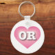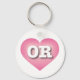 Este llavero presenta un corazón rosado con un centro lavado de blanco que contiene las letras negrita, blanca, superior funda OR, la abreviatura oficial de Oregon, el estado castor.