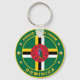 La bandera nacional de Dominica está impregnada en forma de círculo, que en sí misma está decorada con los colores de la bandera. Además del texto, hay 6 estrellas decorativas que actúan como divisores.