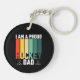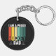 La cadena de claves Orgulloso Hockey Dad presenta varios colores verdes, blancos, amarillos y oxidados naranjas sobre un fondo negro con texto blanco que dice ¡Soy un padre orgulloso de hockey!