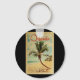 Una estampada de arte de mediados de siglo Orlando Florida, de estilo poster de viajes vintage. Cuenta con una palmera curvada en una playa de arena con el océano bajo un cielo azul turbio.