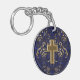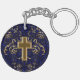 Llavero Ornate Scrolls & Cross Keychain, Drac Blue & Gold
