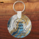 Keychain con un bonito diseño de mármol azul, dorado y blanco que da un aspecto lujoso y moderno.