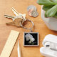 El bonito y la orquídea blanca personalizada en Black Boda Keychain es una especie de idea de regalo para la recién casada novia y el novio o sus acompañantes bodas. Esta elegante cadena de bodas personalizados floridos presenta una fotografía floral de una flor de orquídea blanca phalaenopsis floreciente en el tallo con un fondo negro.