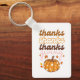 Una cadena de claves moderna y linda con un texto elegante de tipografía "gracias, gracias gracias gracias", y calabaza de groovy caída.