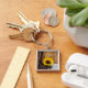 El encantador Country Sunflower Western Boda Keychain puede ser personalizado con los nombres de la novia y el novio y la fecha de la ceremonia de matrimonio para crear un regalo de honor para los recién casados o el favor del partido. Esta moda rústica informal, aunque elegante, de estilo personalizado, cuenta con una pintoresca fotografía floral de botas de vaquero marrón, flor de girasol amarillo y madera de granero sobre satén blanco.