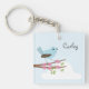 Pájaro azul en rama de flor rosa. Teclado acrílico con imagen y texto en el frente y en el reverso. Personalización opcional.