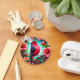 Un pájaro vibrante con plumas coloridas se sienta en una rama entre flores rosadas exquisitamente detalladas.