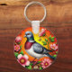Llavero Pájaro Colorido Encaramado Entre Flores Vivas