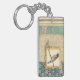 Llavero Pájaro marrón y azul en una rama mirando hacia arr
