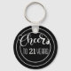 Saludos a (Su edad) Keychain. El diseño en blanco y negro se puede cambiar.