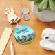Muestra las palmeras verdes y vibrantes frente al telón de fondo de las montañas rosa pastel y azul en Palm Springs, California, EE.UU. en una cadena de llaves como recuerdo de uno de los lugares más grandes de América!