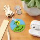 ilustracion personalizado de una palmera. Color de fondo personalizado. Texto personalizado en ambos lados.