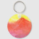 Pintura abstracta del volcán montañoso de paisaje brillante y vívido. El cielo amarillo brillante, el naranja niebla del volcán con tierras rosadas en primer plano.