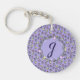 Patrón alegre y luminoso de panes rosados, púrpura y amarillos con un monograma en una flor floral en el centro.