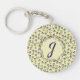 Patrón alegre y luminoso de panes rosados, púrpura y amarillos con un monograma en una flor floral en el centro.