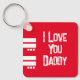 Cadena de teclas de doble lado, idea de regalo de anillo de claves. Reemplace la foto de la parte posterior y el nombre. Se ha utilizado un filtro en blanco y negro, que cambiará automáticamente el color de la foto. Te amo papá. Rojo y blanco.