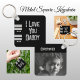 Cadena de teclas de doble lado, idea de regalo de anillo de claves. Reemplace la foto de la parte posterior y el nombre. Se ha utilizado un filtro en blanco y negro, que cambiará automáticamente el color de la foto. Te amo papá. Negro y gris.