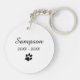 El frente de este llavero de recuerdo mascota tiene un diseño de corazón / floral y una cita: Una a mi lado, para siempre en mi corazón. La parte posterior tiene una huella de pata - personalizable con el nombre del mascota y el período de vida.