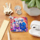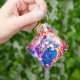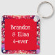 Una pareja de anime íntima rodeada de corazones y flores. Los colores utilizados son rojo, morado y azul. Apreciado por El día de San Valentín o aniversario o cualquier ocasión romántica. Cadena de claves personalizada.