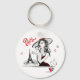 El ilustracion de una mujer con un gran brújula se tomó un café en París con la Torre Eiffel al fondo. Acentos rojos.