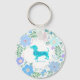 A soft pastel blue flower wreath frames your Dachshund silhouette on this customizable keychain. Personalize the front with your dog's name under the silhouette. Upload a cherished photo on the reverse side to complete your design. Perfect for dog moms, pet lovers, and everyday use. Floral details create a charming and stylish look.