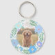 Llavero Pastel Blue Golden Retriever Floral Photo & Name