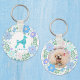 Llavero Pastel Blue Poodle Custom Floral Name & Photo