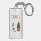 Un hermoso pastor australiano multicolor tiene la cabeza coqueta a la espera de las vacaciones. Un árbol de Navidad decorado está cerca. Las huellas de pata rodean al perro haciendo un juego de palabras humorístico.