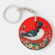 Un pato vibrante ilustrado, probablemente un mercader, de pie sobre un vibrante fondo rojo. El pato tiene un sorprendente plumaje con una cabeza negra adornada con un parche rojo, una garganta blanca y una mezcla de plumas verdes y azules oscuras en la espalda. Está rodeado por una gran variedad de flores coloridas, entre las que destacan las flores rosas y blancas, que le dan un toque animado y natural al lugar. La composición general combina la forma elegante del pájaro con una paleta de colores llamativa y llamativa, creando una pieza de arte visualmente atractiva.