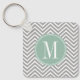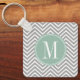 Llavero Patrón de Chevron verde gris y blanco con monogram