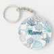 Llavero Personalizable con Patrón de Estrella de Mar con Conchas Azul y Verde Aguamarina