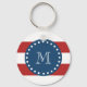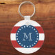 Llavero Patrón de franjas blancas rojas, monograma azul ma