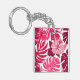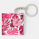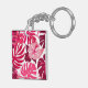 Llavero Patrón de hibiscos rosados y monsteras tropicales