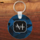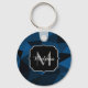 Llavero Patrón de malla geométrica negra azul oscuro Monog