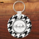 Gráfica de houndstoth clásica clásica con diseño de patrón de chica elegante, geométrica moderna, negra, blanca y gris claro con placa con nombre monogramado inicial de nombre o apellido y nombre personalizado. Regalo de monograma para mujeres y chicas.