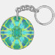 Cadena de llaves en tintes de corbata en tonos cobálticos azules, verdes y amarillos con fondo de agua/verde azulón