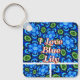 Llavero Patrón floral azul abstracto