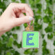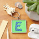 Una cadena de claves muy bonito con la "E" inicial en un patrón floral azul y verde sobre un fondo verde claro. Puede cambiar fácilmente la forma y el tamaño de la cadena de teclas, así como el color de fondo (utilizando el botón Personalizar). Y si ves uno de mis otros patrones que prefieres, por favor contacta conmigo a través de mi tienda y crearé uno sin costo adicional.