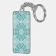 Llavero Patrón floral, azul Verde azulado inicial