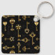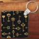 Patrón incomparable de llaves antiguas, doradas y de silueta sobre fondo negro.