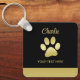 Llavero Paw dorada de perro brillante sobre fondo negro