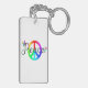 Tipografía colorida y signo de paz con diseño de mariposas arco iris.