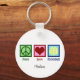 Regalo de la cadena de claves Peace Love Pickleball para un jugador de bola de pepinillo con un lindo signo de paz, corazón y una bola amarilla para el deporte. Personaliza con un nombre.