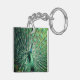 Peacock hincha su tren para atraer a las aves de corral mientras intimida a otros hombres.