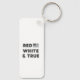 Esta cadena de claves presenta un diseño audaz y patriótico con la frase "RED WHITE & TRUE" en letras mayúsculas. El diseño incluye una imagen de la bandera de los Estados Unidos en escala de grises, colocada a la derecha del texto. Este llavero, hecho con material de alta calidad y duradero, es perfecto para mostrar su orgullo nacional. Su tamaño compacto lo convierte en un accesorio elegante y práctico para sus llaves, bolsas o como un regalo atento.