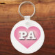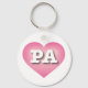 Este llavero presenta un corazón rosado con un centro encalado que contiene las letras negrita, blanca y alta del funda PA, la abreviatura oficial de Pennsylvania, el estado clave.