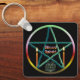 Un pentáculo de cuerda verde claro gotea con nieve derretida rodeada por los colores del Sabbet de Imbolc a principios de febrero; el hombre verde aparece como velas quemadas.