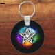 Pentagrama luminoso de dibujo artístico con cinco elementos mágicos, agua, tierra, fuego, astral, aire sobre fondo negro. Pentagrama de Wiccan. Wicca